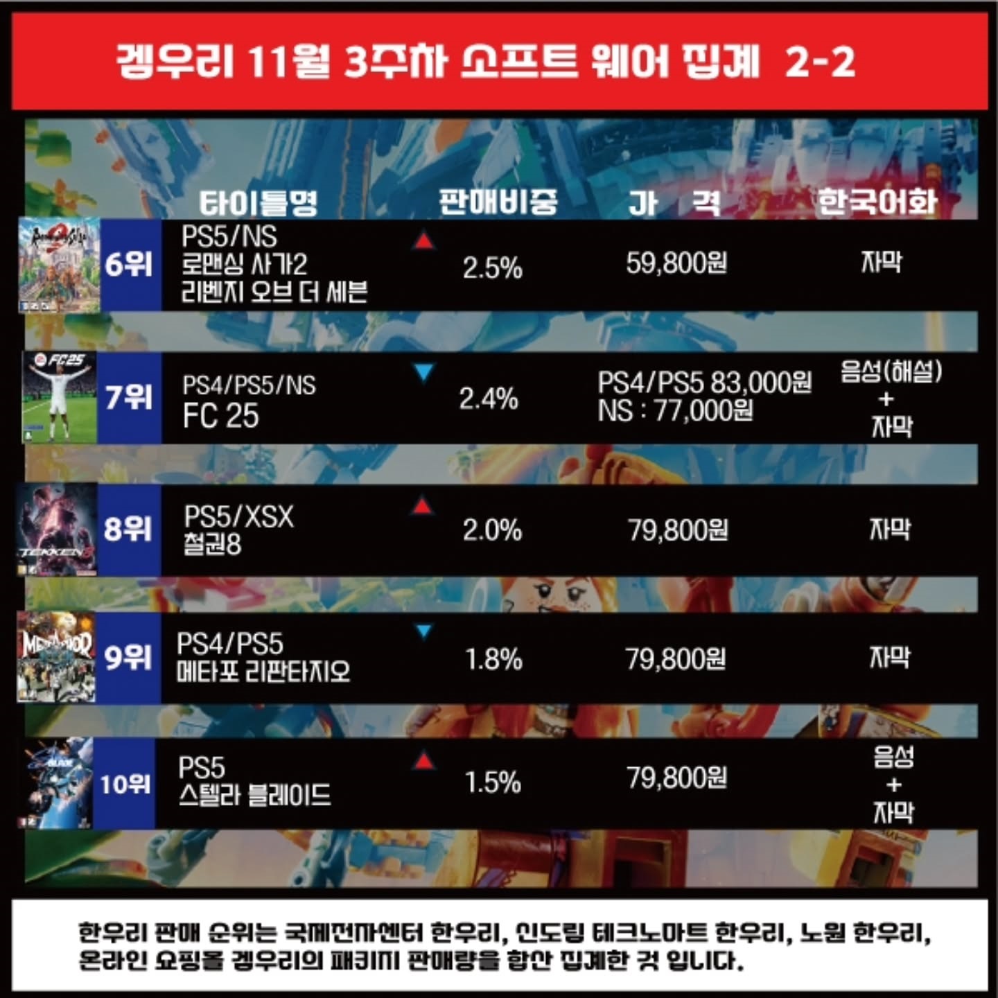 2024년 8월부터 한우리 인스타그램에서 판매 순위를 공개하고 있습니다. 구글 검색으로 KONSOLER 아카이브에 들어오시는 분들이 게임 판매 현황, 인기 순위 등을 파악하실 수 있도록 이미지 형식의 글로 남겨두겠습니다.
